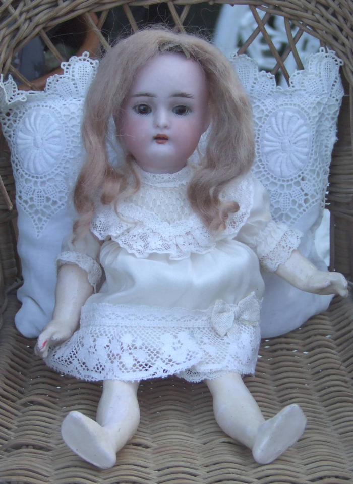 Another cute doll with a perfect bisque head and perfect body. She has open close
